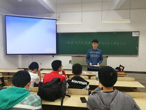 2015级本科生第一党支部在综合楼102室开展了《中国共产党纪律处分条例》学习教育会议,集中学习理解《条例》精神。