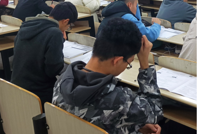 听力考试结束后,监考员将答题卡一卷收回,在到达规定时间后,示意大家开始做后面的阅读和翻译。面对较为熟悉的题型,同学们有较为丰富的经验,答题速度也有所提升,认真地圈点勾画重点词汇短语,迅速锁定答案。