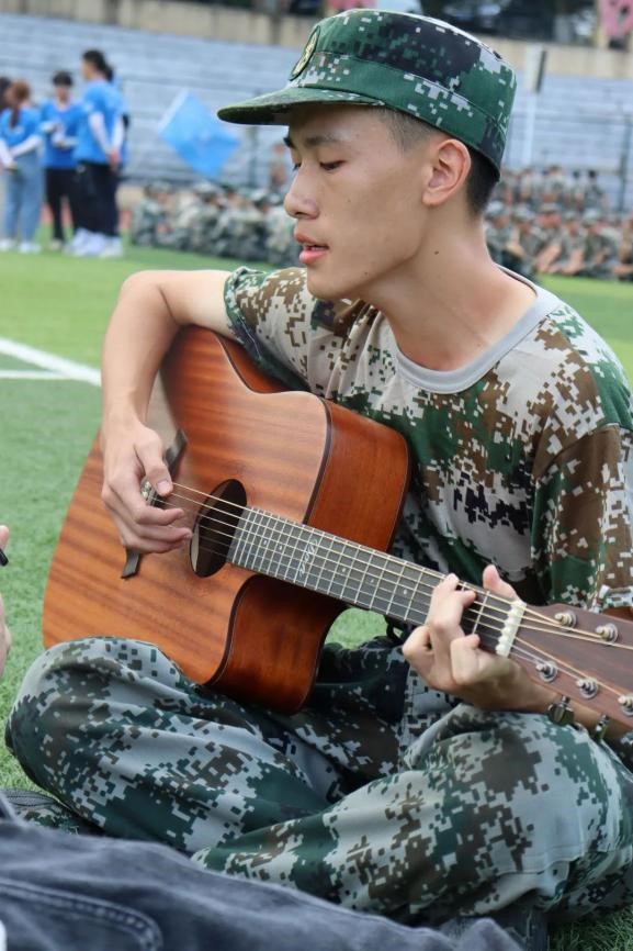 军训虽苦,但是我们苦中作乐。每一节操课的课间,同学们发挥自我所长,表演才艺,拉近彼此之间的距离,为军训生活增添一抹快乐!夏日炎炎,绿茵草地,大家围成一个圈坐在一起,微风习习,笑语晏晏,掌声、欢呼声好不吝啬,大家一起享受这难有的快乐时光!