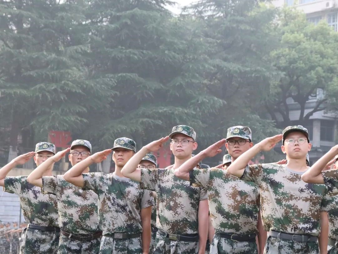 机械学子不畏头顶艳阳,毅然地站立于绿茵场之中,方显少年之锐气!敬礼是军人表示尊敬的方式,抬手敬礼刹那,竟显军人气魄!