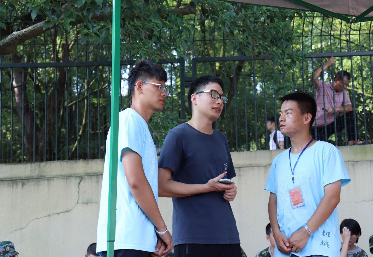 此外,胡老师还与负责机械2112班的班级助理,以及班级军训总负责进行了对话交流,向他们强调了关于班级军训管理以及同学身心健康等问题。