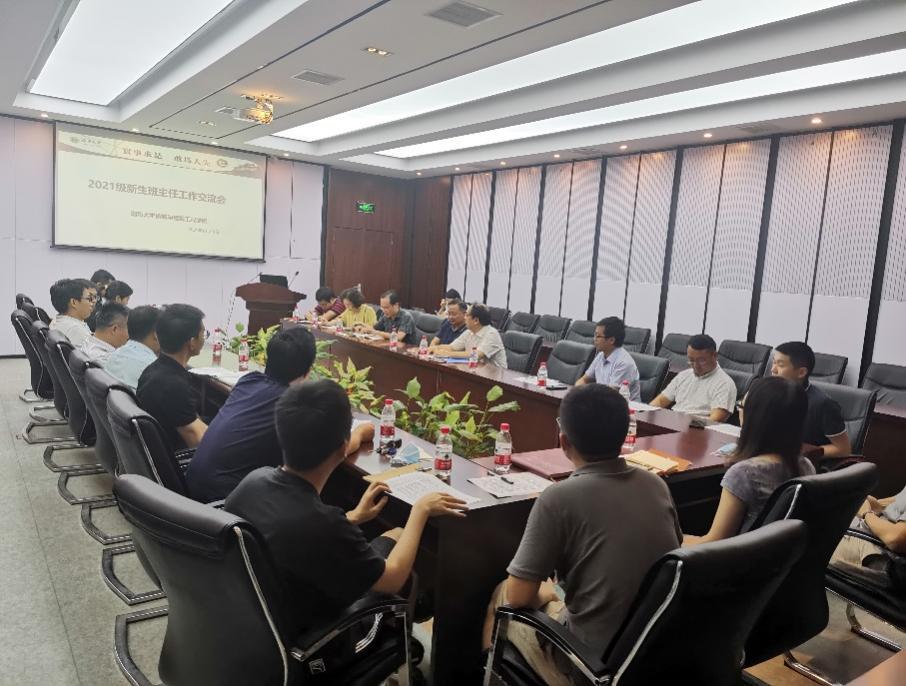 2021年8月30日下午三点,玩偶姐姐 2021级新生班主任工作交流会于院楼316顺利召开。机械院副院长张屹老师,党委副书记周加喜老师,党委副书记易洪波老师,优秀班主任代表钟翔老师、丁飞老师,21级辅导员方婷老师及全体新生班主任参加了会议。