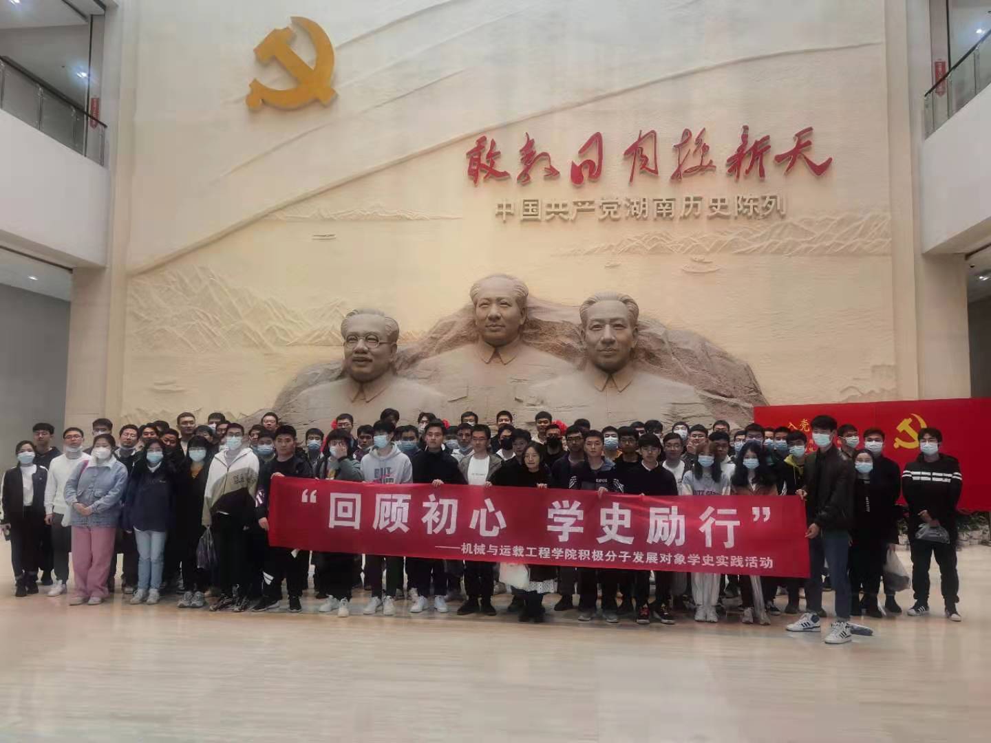 此次活动以“敢教日月换新天-中国共产党湖南历史陈列”为主题展开,学员们在展会大厅瞻仰了名为“潇湘魂”的毛泽东、刘少奇、任弼时三位伟人的雕像后,在陈列馆讲解员的带领下,逐步深入展厅,以历史轴线为脉络,重温了在“开辟新天地-新民主主义革命时期”、“描绘新画卷-全面建设社会主义时期”、“谱写新篇章-改革开放时期”三个关键历史时期发生的重大事件,并通过专题形式进一步认识了以毛泽东为代表的湘籍和长期在湘工作的优秀党史人物。历史是最好的教科书,红色基因是最好的营养剂。百年党史引导学员们筑牢理想信念、厚植家国情怀,从革命传统的红色基因中汲取砥砺奋进的精神力量,让红色基因融入血液,让革命精神注入身心。