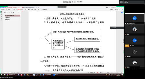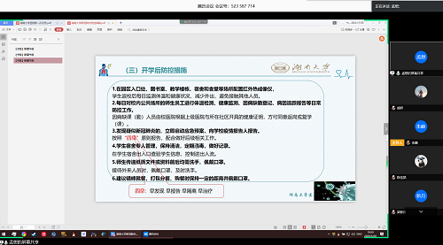 新冠肺炎防控指南》、肺炎防控知识手册,提醒同学们注意日常居家防护、及时疏导个人情绪。 朱峰、郑洲分享在疫情期间参与社区志愿者服务工作的经历与心得,班级助理肖启伟分享有关专业分流和保研的经验,鼓励同学们尽快确立更高目标,不断提高专业能力。同学们积极打开麦克风参与讨论。