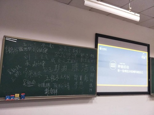 最后,每人在明信片上写下了对明年的寄语,第一次班会顺利落幕。希望在接下来的两年里,同学们团结进取,为大学生活画上圆满句号。