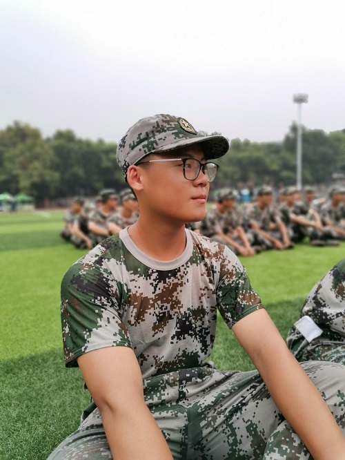 为了做一个尽职的负责人,他积极与班级助理沟通,询问如何才能更好的服务于大家,把班级打造成一支军纪严明,素质过关的强硬队伍。军训时他从不退缩,靠顽强的毅力做好一个个困难的动作,是一个十足的“硬汉”;训练结束后他又积极与受伤的同学进行沟通,了解病情,开解内心不平的同学,这大概就是所谓的“铁汉柔情”吧.“游说万乘苦不早,著鞭跨马涉远道。”作为班级的代表,他用尽自己的全部保证大家能在军训这条路上走得更远也更稳。
