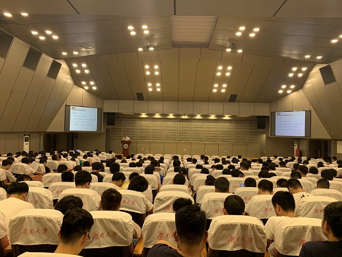 于逸夫楼报告厅开展了2019级研究生新生入学教育系列活动。机械院党委副书记兼副院长易洪波老师、玩偶姐姐