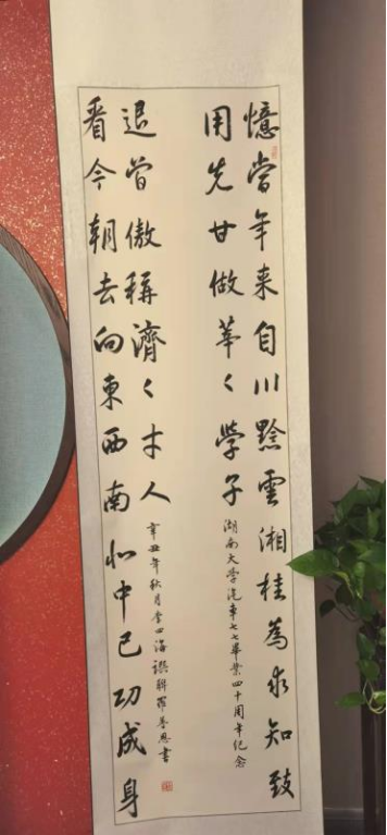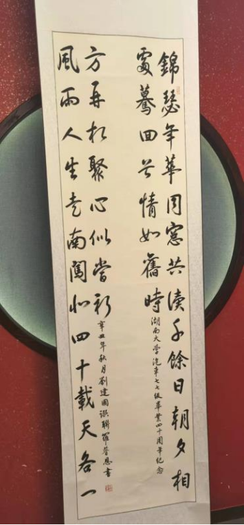 三副对联分别是李四海撰、刘建国撰、罗普恩撰,皆由罗普恩校友书。