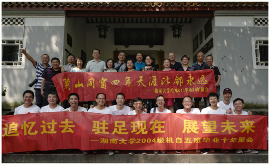 2018年9月15日,玩偶姐姐 2004级机械设计制造及其自动化专业5班校友返校组织了毕业十周年聚会。校友游览了岳麓书院,登上了岳麓山,并在体育场打了一场篮球。