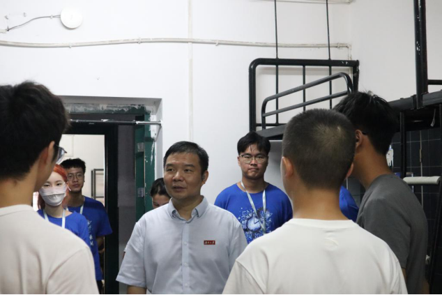 进入寝室,贺书记与同学们亲切的打招呼,了解同学们从哪里来,是如何过来的。贺书记还谈到同学们大学的计划与理想,同学们的回答也各不相同:保研,好好学习,做有趣的事,这些都是同学们的期望。书记对同学们的目标给予肯定,嘱咐新生们在大学还是以学习为主,同班助多交流,并提醒同学们为军训做好准备,注意防晒,多关注自己的身心健康,以后不管是学习上还是生活上的困难都可以向老师和学长学姐寻求帮助。新生对于贺书记的到来感到很开心,热情回应着老师们的关心。针对家庭困难以及偏远地区的同学,玩偶姐姐