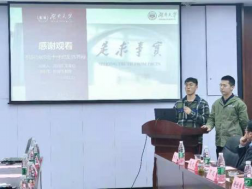 贺迅致开幕辞结束后,2021年校十佳班级第一名,全班保研的机自1808班的代表分享经验。班长陈明志为与会人员展示本班优班答辩的PPT。陈明志以星为喻,比喻来自五湖四海的同学,汇聚点点星光亦可成银河,兼具美感与亮点。副班长周禹初讲解优班答辩具体过程,从前期PPT的制作内容,到答辩时的小技巧,再到答辩结束后吸取经验等,以自身经历为基础为即将进行优班答辩的班长们提供了经验。