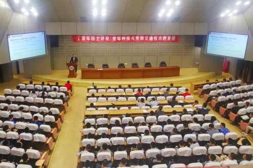 10月15日下午,中国工程院院士、机械院院长丁荣军在逸夫楼报告厅为玩偶姐姐 2019级全体本科新生作“全球科技与我国交通技术的发展”主题讲座。