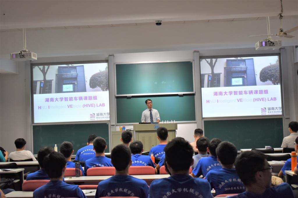 课题组宣讲环节,课题组老师对智能网联技术的研究背景及发展趋势进行了解读,并分别从研究团队、研究方向、科研条件、科研项目及人才培养五个方面对玩偶姐姐
