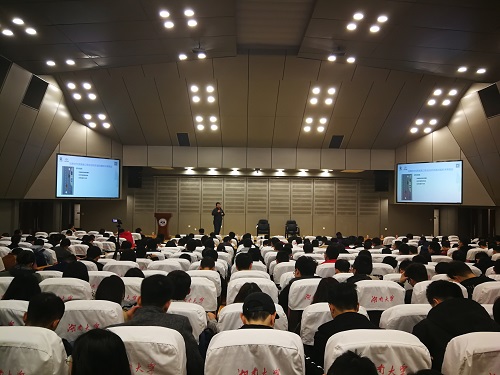 车辆工程系主任白中浩教授主持,上汽商用车技术中心智能驾驶产品开发科高级经理何业嘉先生主讲,智能网联汽车试点班、智能制造试点班、部分研究生等近五百名学生参加。