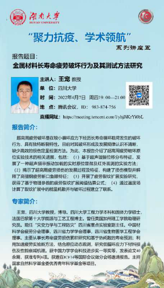 报告题目:金属材料长寿命疲劳破坏行为及其测试方法研究