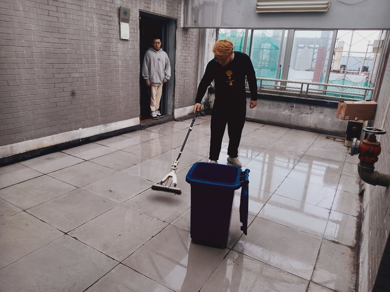 由于机械院院楼近期在进行整体的维修改造,活动室杂物堆积和落灰严重,因此本次活动主要计划将物品摆放到位,并对地面进行清扫等。早上八点,车二支部的同学们在传达室领取清扫用具后便赶到六楼开始清扫工作。虽然活动室杂物堆积情况严重,但是同学们不畏困难,有条不紊,分组进行了书籍的整理摆放和杂物的清理,并使用消毒液对地面进行了深度的清洁。即使活动室存在许多视角盲点,大家也没有放过任何一个可能藏有垃圾的角落。经过一个上午的忙碌,活动室焕然一新,堆放的杂物被进行了清理,地面也恢复了光泽。