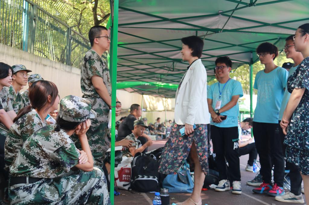 彭晓燕书记带领机关党支部老师来到军训场地慰问新生,给艰苦拼搏的同学们送去关怀和温暖。