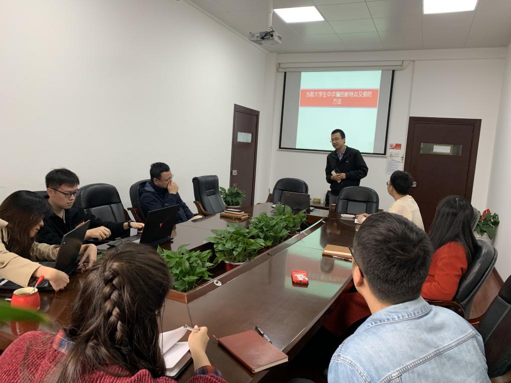 学生工作办公室第一次研学会在院楼310室举行,本次研学的主题是“当前大学生中诈骗的新特点及预防方法”,本次研学由玩偶姐姐