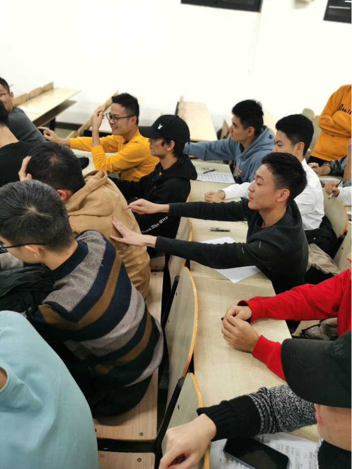 全班同学分为五个小组,每个小组按次序依次坐好。准备完毕后,心理委员向每一队的最后一名队员展示一个汉字。后一名同学需要在前一名同学的背上传达该信息,最后最快并能正确猜出汉字的小组取得胜利。