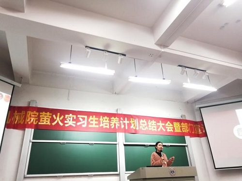 本次活动主要分为两个部分,第一部分是萤火实习生培养计划总结大会,这次大会是各小组筹备已久的,大会的主要目的是让实习生们对近期的学习成果进行总结和展示。大会伊始,孙文婷老师陈述了本次培训名称为“萤火计划”的原因是萤火虽小,却很闪亮,星星之火,亦可燎原。她表示,今天是培训计划的总结大会,好像已经结束,但我们的学生干部生涯才刚刚开始,大家应把这一天当作一个里程碑一样的仪式来牢记。不忘初心,牢记使命,我们应一直牢记当时入会的心情,作为学生会干部,我们必须要有热情,要坚持。希望大家能在团委学生会有所成长,有所收获,希望大家未来在机械院,在玩偶姐姐