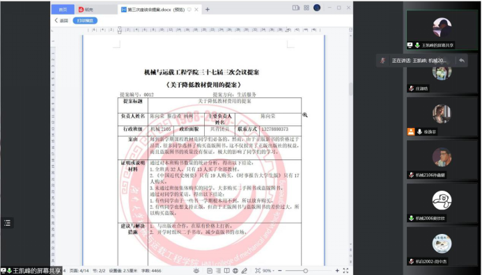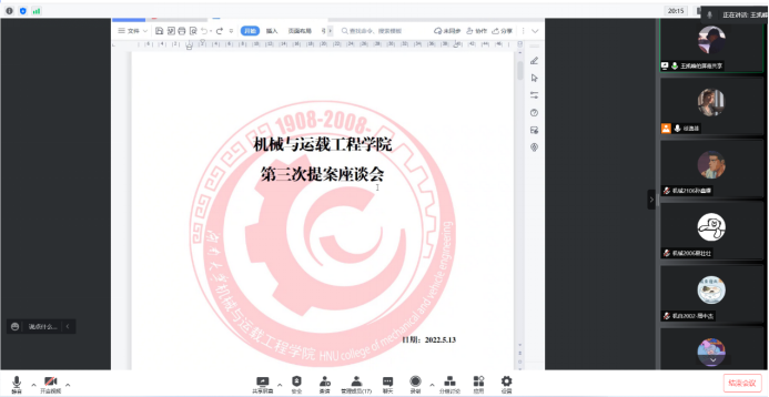 第三次座谈会,本次会议积极响应防疫要求,采用线上会议的形式。会议对学生代表所提交的提案进行了讨论与交流,总结出各种提案的解决方案。