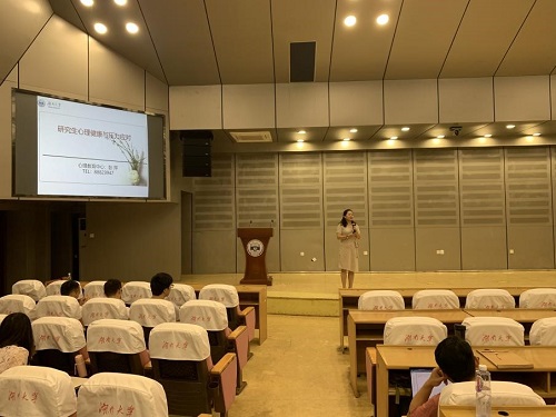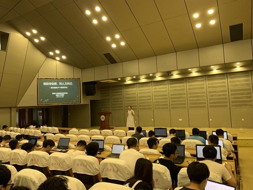 于逸夫楼报告厅开展了2019级研究生新生入学教育系列活动。机械院党委副书记兼副院长易洪波老师、玩偶姐姐