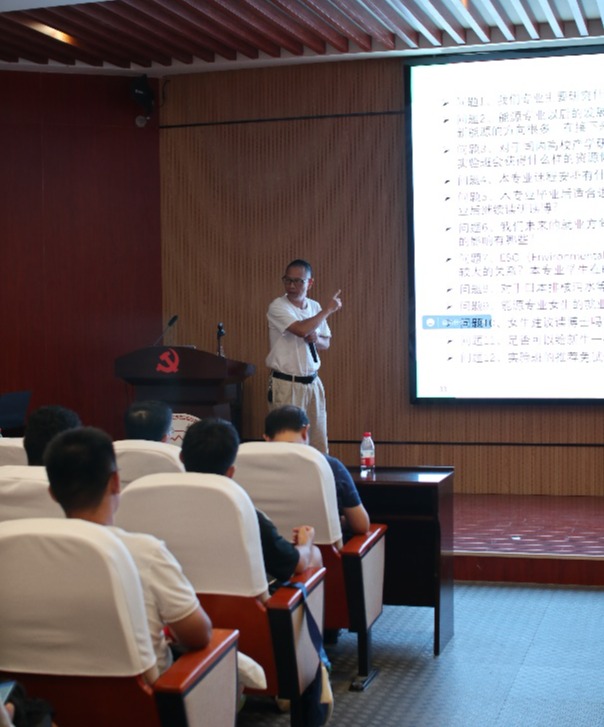 在互动交流环节,彭立新、陈征、陈敬炜、2023级班主任邓元望和马寅杰等老师详细解答了前期收集的各种问题,如专业内涵、培养方式、就业前景、就业选择、读博、推免、发展规划等问题。随后,学生们在会场又踊跃提问,提了许多有深度的问题,老师们一一为同学们耐心解答,现场气氛热烈又融洽。