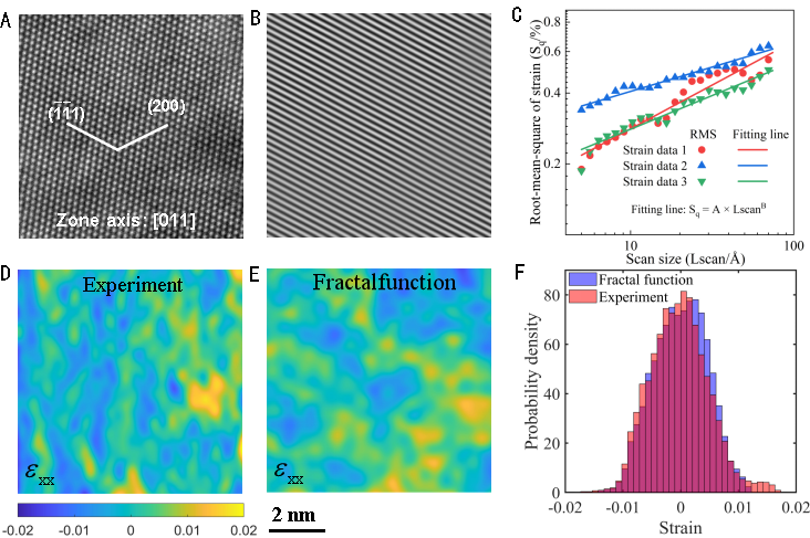 采用球差校正扫描透射电子显微镜获得了FeCoCrNiMn高熵合金非均匀晶格应变场,结合微米柱压缩实验清楚地证明了非均匀应变场对力学性能的重大作用,发现了由应变幅值和离散度控制的新的“非均匀晶格应变”强化机制,有别于析出相强化、固溶强化等传统强化理论。调控材料内在的非均匀晶格应变为开发先进的严重晶格扭曲晶体材料开辟了新的途径。