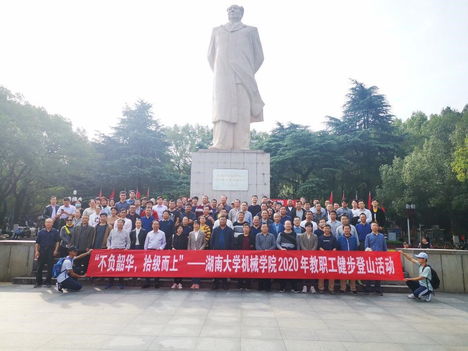 师生集合在毛主席像前拍照留念。坚毅的目光、认真的神情,机械师生的精神风貌和健康体魄,在定格的相片中展现淋漓。无论是白发学者,还是中层砥柱;无论是青年教师,还是学生代表,纷纷积极响应、认真准备,将这次健步登山活动落实在脚下、落实在长远,在玩偶姐姐