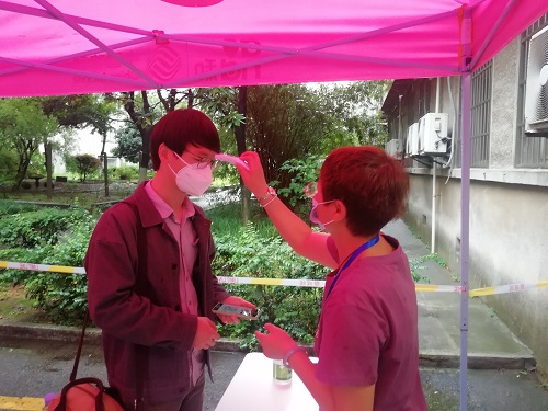 疫情防控要求和入校工作流程,工作人员首先对陈荣华进行了体温测量、行李物品消杀和信息登记等工作。