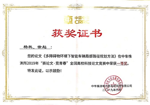 智能车辆团队研究生杨帆的论文《多障碍物环境下智能车辆局部路径规划方法》荣获一等奖。该论文结合曲线拟合与图搜索算法,为结构化道路中、多障碍物场景下智能车辆路径规划提出了新方法,具有较高的工程应用价值。