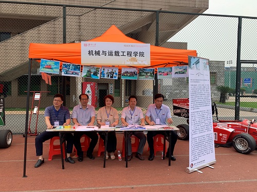 机械院的众家长和考生们介绍了机械院的具体特色和各专业的侧重方面与相关情况。同时,田径场上那两辆引人瞩目的红绿赛车和金辉的奖杯也引来不少家长和同学驻足旁观,让同学和家长们对机械院车队有了浓厚的兴趣和向往。