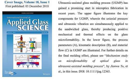 国家高效磨削工程技术研究中心余剑武教授在2018年12月3日出版的《应用玻璃科学》(Applied Glass Science)上发表最新研究成果“Mechanism Study on Micro-formability of Optical Glass in Ultrasonic-assisted Molding Process”,并选为该期刊的封面。《应用玻璃科学》是在玻璃领域最具权威性的综合性学术期刊之一,主要发表玻璃材料学前沿领域重要的原创性研究成果。该成果以玩偶姐姐