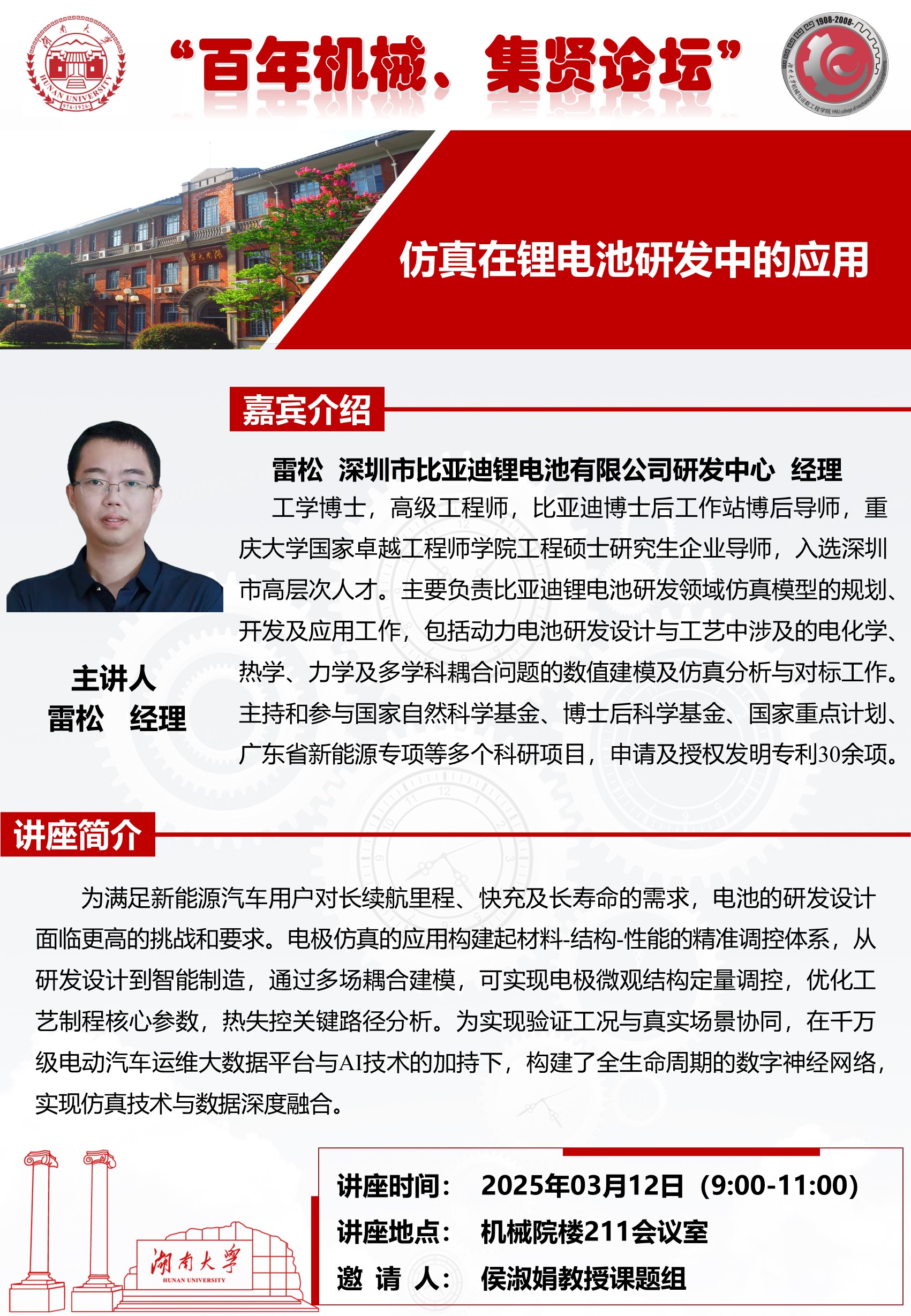 “百年机械、集贤论坛”——雷松