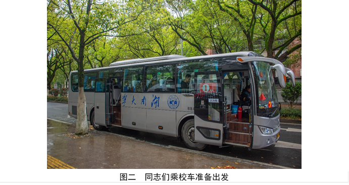 21日上午八点三十分,同志们统一乘坐校车前往目的地。